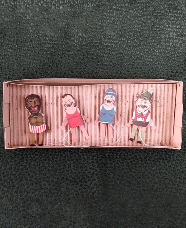 | 4 VICTORIAN PAPER LITHO JUMPING JACK TOYS |